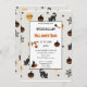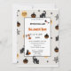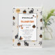 C'est mignon Boo Halloween illustrations enfants fête parfaite Halloween carte d'invitation fête sur rose pastel blush. Cette fonction de carte d'invitation est fantômes, citrouille, chats, toile d'araignée, casquettes de sorcières, balai, araignée et chauves-souris.