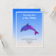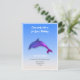 Dauphin mou violet - invitation à la fête d'anniversaire. Il présente un dauphin de dessin animé contre un bel arrière - plan bleu dégradé avec du sable comme la couleur au fond. Personnalisez les deux côtés avec les détails de votre fête. Conception par lumirala.