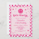 Invitation d'anniversaire de fille rose vif à carreaux avec un joli sourire heureux.