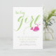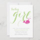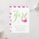 Jolie fuchsia baleine rose océan typographie verte bébé douche fille. Il contient le texte "Petite fille" et une petite baleine rose avec le coeur. Le dos comprend un motif de baleines.