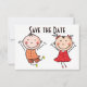 Annonces de save the date fantaisistes et amusantes avec un homme et une femme en figurine bâtonnet, sautant de joie. Facile à personnaliser avec vos plans de mariage.