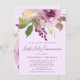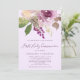 Ces adorables invitations de la Première Sainte Communion sont ornées d'un bouquet fleuri d'aquarelle violette avec beaucoup de feuilles verts sur un arrière - plan de lavande douce. Un script manuscrit violet et un texte moderne se combinent pour un look simple et élégant neutre pour le genre.