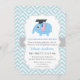 Fêtez le jalon de l'achèvement de la maternelle ou de l'école primaire pour les enfants avec une fête de remise de diplômes! Cet invitation à l'éléphant bleu mignon avec un casquette carré académique est parfait pour les parents, les enseignants et les écoles qui planifient une fête de remise des diplômes ou une cérémonie pour les enfants diplômés ! L'éléphant est approprié parce qu'ils sont l'un des animaux les plus intelligents. Elégant et élégant pastel bleu et blanc chevron zigzag motif arrière - plan. Personnalisez facilement avec les détails de votre fête.