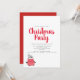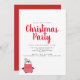Une jolie invitation à la fête de Noël avec une adorable illustration de pingouin en noir, rouge et blanc, et une police de style lettré de brosse rouge. Personnalisez avec vos détails de fête dans les polices sans serif modernes. L'inverse est en rouge festif.