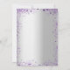 Une invitation à la fête d'anniversaire de 21e anniversaire, féminine et féminine (ou tout âge). Devant : Un arrière - plan à la mode faux argent. Décoré de parties scintillant violet foncé et violet, pétillant. Personnalisez et ajoutez un nom, des détails du parti. Le nom est écrit avec un script de style écrit à la main, des lettres de couleur violette. Dos : faux arrière - plan argent et faux parties scintillant.