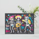 Invitation tes amis pour célébrer le Jour des Morts avec cette invitation vibrante avec des graphiques colorés squelettes mariachi. Customisez facilement le libellé avec l'éditeur en ligne. Ajoutez des détails supplémentaires au dos si nécessaire. Achetez l'invitation numérique ou l'invitation imprimée, ou les deux.