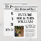 Faire la une avec votre histoire d'amour en utilisant notre Faire-part de mariage "Journal" avec une photo unique en noir et blanc - un design créatif et vintage qui transforme vos fiançailles en une actualité de première page. Doté d'une mise en page classique de journal, d'une photo en noir et blanc personnalisable et de titres éditoriaux ludiques, ce faire-part est parfait pour les couples qui souhaitent sortir des sentiers battus avec humour et personnalité.