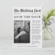 Journal Enregistrer la date Carte postale avec photo et histoire exclusive. C'est une façon unique de faire savoir à vos proches que vous êtes fiancés et qu'ils devraient enregistrer la date.