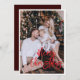 Ce carte de fin de année de Noël, bordeaux et rouge blanc script ce qu'une famille de photos année. La carte de vacances est la formule de voeux de vacances simple et parfaite. Le design classique moderne présente des tourbillons fantaisistes et des fleurs fantaisistes magnifiques. Personnalisez l'avant et l'arrière de la carte avec une photo, votre nom de famille.
