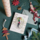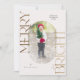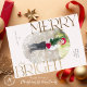 Carte de voeux de Noël, photo personnalisée avec cadre rose vif, et Joyeuse et brillante élégante typographie or. Personnalisez facilement cette carte en remplaçant les photos par les vôtres et en customisant le message texte et le nom de famille.
