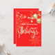 Joyeuses fêtes Noël ornements dorés, flocons de neige dorés, carte d'annonce personnalisée.