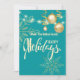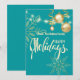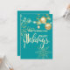 Joyeuses Fêtes ornements dorés, flocons de neige, guirlandes lumineuses, carte d'invitation de Noël verte moderne élégante.