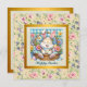 Joyeuses Pâques avec un lapin mignon, des œufs et une carte ronde classique de vacances florales. Illustration de dessin animé aquarelle colorée d'un lapin de Pâques mignon.