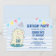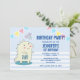 Invitation à une fête d'anniversaire avec un dinosaure souriant et mignon avec RAWR écrit sur le ventre. 3 étoiles heureuses au-dessus de sa tête.