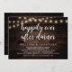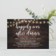 Belle célébration de fête de Joyeux dîner d'après mariage, carte d'annonce / invitation d'évasion amoureuse, dans un design de bois de ferme rustique avec guirlandes lumineuses. C'est parfait pour votre réception de mariage et fête de célébration post-mariage. Ajoutez vos détails dans la même police / lettrage.