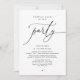 Marquez le début de votre pour toujours avec élégance en utilisant notre carte d'invitation de cérémonie d'élopement de mariage contemporaine sur le thème noir et blanc romantique, "Soirée Happily Ever After". Parfaite pour les couples qui prolongent leur occasion joyeuse, cette invitation dégage de la sophistication avec une touche de ludicité, préparant le terrain pour un événement mémorable. Ornée d'un thème de design de script moderne intemporel, elle ajoute une touche de charme raffiné à vos festivités. Conçue par TeeshaDerrick, cette invitation promet de capturer magnifiquement votre histoire d'amour.