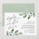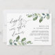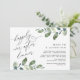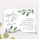 Conception Romantique Moderne Magnifique, avec thème d'aquarelle de verdure de feuilles d'eucalyptus, Annonce de Mariage en fuite, Carte d'invitation (Dîner "Pour Toujours Heureux"). C'est parfait pour votre réception de mariage et fête de célébration après le mariage. Ajoutez les détails de votre célébration de brunch / dîner de mariage en fuite.