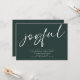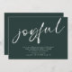 Contemporain Joyeux Script de Noël Vert Soirée. Disponible numériquement et imprimé. Personnalisez facilement avec vos détails de fête. Joyful est dans un grand jeu moderne Calligraphie en blanc qui peut être changé à une autre couleur si vous le souhaitez, comme le peut l'arrière - plan vert foncé de chaque côté via l'option Modifier plus loin.