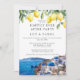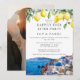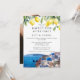 Cette élégante invitation de mariage fête de mariage heureux après, avec des citrons aquarelle et une scène de Santorin, en Grèce peut être personnalisée avec vos informations en typographie chic et photo spéciale au verso. Conçu par Thisisnotme