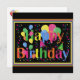 Joyeuse fête d'anniversaire colorée, design décoratif avec ballons de fête et étoiles.