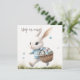 Invitation Joyeux pâques, lapin de Pâques marchant avec des o