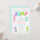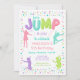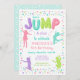 Cette mignonne invitation comprend des silhouettes sautantes pour enfants avec une bordure colorée en confetti.