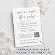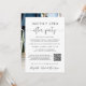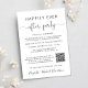 Fuite romantique élégante ou annonce de mariage privée et invitation à la réception de mariage ou à la fête de célébration. Sur le devant, "Happily Ever After Party" est écrit dans un mélange de typographie simple et d'une écriture élégante avec fioritures, et vous pouvez personnaliser votre message et votre invitation plus en détail, créer un code QR lié à votre site web de mariage pour que vos invités scannent pour plus d'informations et répondent en ligne, et ajouter vos noms dans une écriture ressemblant à une signature. Le verso présente votre photo de mariage préférée, vos prénoms et les dates du mariage et de la réception.