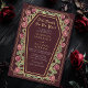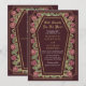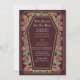 Faites une déclaration audacieuse d'amour éternel. Cette faire-part de mariage gothique présente "Till Death Do Us Part" dans un cadre en forme de cercueil, orné d'épines, de roses et d'accents dorés contre un riche arrière - plan rouge. Parfait pour une fête romantique ! Personnalisez le texte, la police et la couleur arrière - plan en fonction de vos préférences de conception. Objets correspondants dans notre boutique pour un thème de fête complet. Veuillez noter que l'or sur l'invitation n'est PAS un vrai papier d'aluminium et est imprimé en couleurs plates.