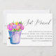 Félicitations pour votre mariage ! Invités Invitations avec ces invitations brunes élégantes et modernes mettant en vedette "juste marié" en calligraphie de style manuscrit avec un seau rustique plein de tulipes et de fleurs Ajouter vos détails brunch en lettres noires assorties. Un élégant motif blanc et bleu pâle complète la carte sur le dos Pour obtenir de l'aide ou une demande personnalisée, veuillez nous contacter par l'intermédiaire du magasin ou écrire un courriel à citronelladesign@gmail.com Cette conception fait partie d'une collection, veuillez visiter notre magasin