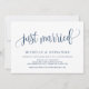 Cette carte d'invitation design calligraphie moderne sur le thème (juste mariés) est parfaite pour votre annonce de mariage / célébration de mariage en elopement. Ajoutez vos détails dans la police / lettrage Navy Blue assorti.