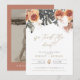 Cette invitation de faire l'élopement "nous avons noué le nœud" présente des feuilles de palmier tropical sèches boho et des accents en terre cuite associés à une police de caractères manuscrite élégante. Utilisez ce modèle pour modifier *la plupart* des textes, police, couleurs de police et couleurs d'arrière-plan pour répondre aux besoins de votre événement. Remarque: les florales à l'aquarelle ne sont *pas* modifiables