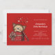 Une invitation d'anniversaire avec un dessin mignon d'un petit chaton sortant la tête d'une boîte cadeau.