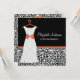 Faites une déclaration de mode avec ces invitations à la douche nuptiale empreinte de léopard en noir et blanc à la mode avec une robe mariage moderne sur un cintre décoré d'un ruban cornu Koi Orange attaché à un joli arc. Cette invitation poster de animal chic peut être personnalisée en ajoutant le nom de la mariée à être, ses couleurs mariages, et les informations sur le parti dans les zones de texte personnalisables du modèle. Ce invitation élégant fait partie de la collection de couleurs de la mode d'automne 2013. Impression plane, pas ruban réel.