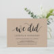 Cette carte d'invitation Kraft de ferme rustique (Nous l'avons fait) est parfaite pour votre célébration / annonce de mariage intime. Ajoutez vos détails dans la même police / lettrage noir.