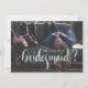 Demandez à vos amis d'être mariés d'équipe avec cette carte de proposition de femme de ménage avec le mot calligraphie manuscrit "femme de ménage" en bleu turquoise pâle avec un indice de détail de papier d'aluminium.