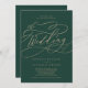 Cette calligraphie verte romantique et fleurie faire-part de mariage est parfaite pour un mariage simple. Le design classique moderne comprend des tourbillons fantaisistes et des fleurs fantaisistes avec une magnifique typographie de feuille d'or en faux champagne. Remarque : Ce design ne comporte pas de véritable feuille d'or. C'est un graphisme de haute qualité fait pour ressembler à du papier doré.