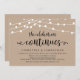 Belles Guirlandes Lumineuses de Ferme Rustique Moderne, Police de Caractères Script Noir sur Fond Kraft Brun, Annonce de Mariage en Intime, Carte d'Invitation (La Célébration Continue). C'est parfait pour votre réception de mariage et fête de célébration après le mariage. Ajoutez vos détails dans la police / lettrage correspondant.