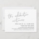 C'est la carte d'invitation pour la fête de mariage intime, avec un design minimaliste / écriture noire minimaliste (La Célébration Continue)