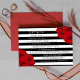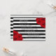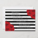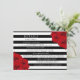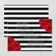 La collection de mariage chic moderne luxe présente un fond rayé noir et blanc classique accentué de magnifiques roses rouges rubis.