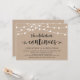 Belles guirlandes rustiques modernes de ferme, police de caractères noire sur fond kraft marron, annonce de mariage en privé, carte d'invitation (La fête continue). C'est parfait pour votre réception de mariage et fête de célébration après le mariage. Ajoutez vos détails dans la police / lettrage correspondant.