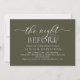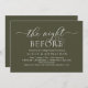 Calligraphie Romantique Moderne, thème Vert Sauge Olive Foncé, carte d'invitation de dîner de répétition de mariage (avec titre de carte: la nuit avant). C'est parfait pour votre fête de célébration de dîner de répétition de mariage, avant votre meilleur jour. Ajoutez vos détails en police / lettrage noir assorti. #TeeshaDerrick