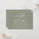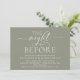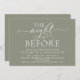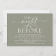 Calligraphie Romantique Moderne, Écriture Blanche, Fond Vert Sage de la Forêt, Carte d'Invitation de Dîner de Répétition de Mariage (avec titre de carte : la nuit avant). C'est parfait pour votre soirée de célébration de répétition de mariage, avant votre meilleur jour. Ajoutez vos détails dans une police / lettrage noir assorti.