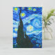 Carte représentant le tableau de Vincent van Gogh La Nuit étoilée (1889). Inspiré par son séjour dans un asile, l'œuvre représente un village sous un ciel nocturne de lune et d'étoiles bleus et jaunes. Un beau cadeau pour les amateurs de post-impressionnisme et d'art néerlandais.