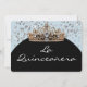 Cet invitation de style moderne 5x7 est présenté dans un jeu de couleurs bleu clair et noir avec du texte blanc, montré avec une belle tiare bleue et or. Vous pouvez customiser cela en choisissant des papiers, des couleurs et ajouter votre propre texte à l'aide de ce modèle.