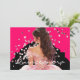 Cet invitation de style moderne de taille 5x7 est montré créé dans Hot Watermelon et le jeu de couleurs noir avec une jeune femme. Vous pouvez customiser cela en choisissant des papiers, des couleurs et ajouter votre propre texte avec ce modèle. Vous pouvez également remplacer l'oeuvre de dame par votre propre photo si vous le souhaitez. Images autorisées