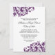Invitations pourpres de la Réunion de classe. Des flourishes pourpres élégants de remous sont décrits à cette invitation de réunion de classe. Choisissez le bouton de personnaliser pour changer le style de police, la couleur et la taille.