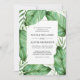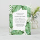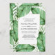 Faire-part de mariage chic à l'ambiance tropicale, cet élégant design botanique présente des feuilles tropicaux luxuriants et des frondes de palmiers entourant un cadre rectangulaire blanc contenant les détails de votre mariage. Un choix fabuleux pour un mariage à la plage, un mariage de destination, un mariage luau ou un mariage à thème tropical. Personnalisez le texte dans le modèle de design avec vos détails. Vous pouvez modifier le libellé et ajouter ou supprimer des lignes de texte selon vos besoins.
