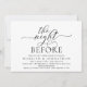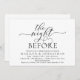 Annoncez votre bonheur toujours après dans le style avec notre carte d'invitation à la répétition mariage de la conception moderne de thème noir et blanc (La nuit avant). Idéal pour les couples qui ont décidé de célébrer la veille de leur grand jour. Avec son design sophistiqué et ludique, cette invitation vous donnera le ton pour un événement inoubliable. La carte d'invitation présente un design de script romantique moderne, ajoutant une touche d'élégance intemporelle à votre célébration. Conçu par TeeshaDerrick