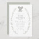 Célébrez un petit en chemin avec cette élégante invitation à baby shower à thème d'éléphants, la verdure poussiéreuse de la sauge et la typographie douce grise.