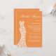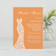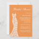 Une belle robe en dentelle vintage accentue cette invitation à la douche nuptiale sur un arrière - plan orange.